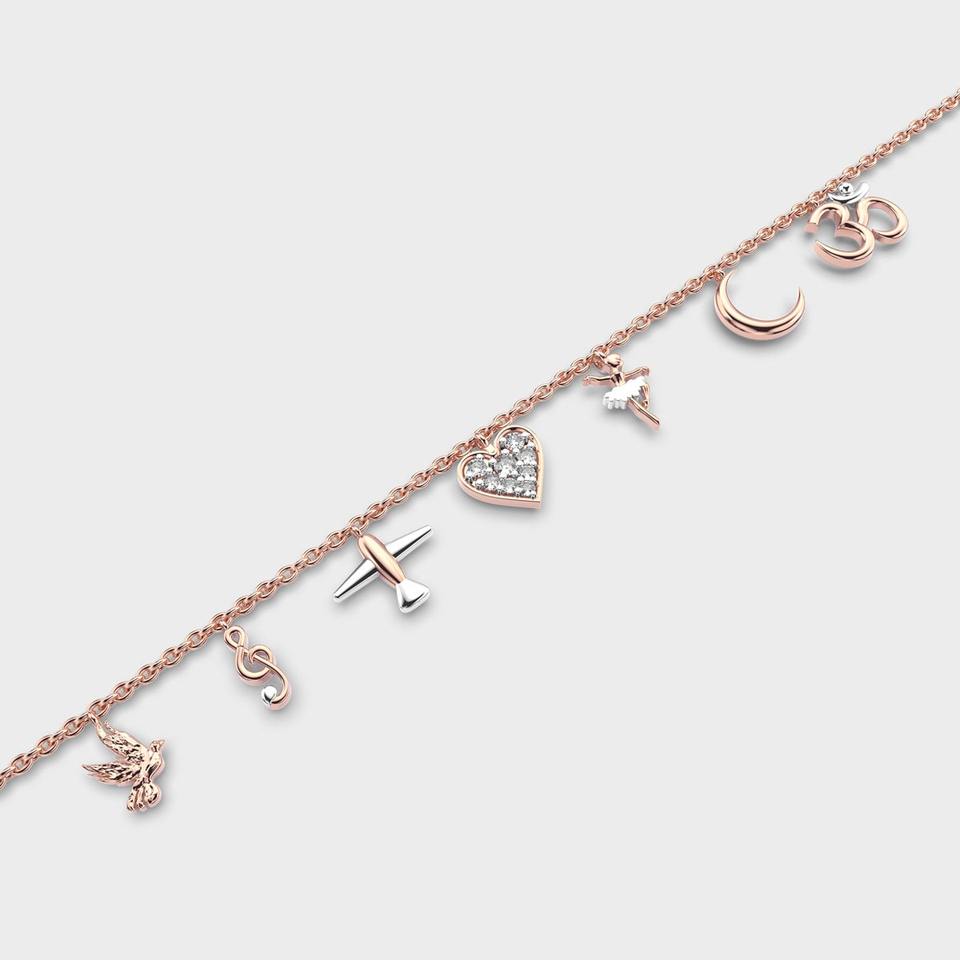 9K Yellow / White / Rose Gold Lab Grown Diamond Heart Charm Bracelet Symbol Pendant Chain Jewelry