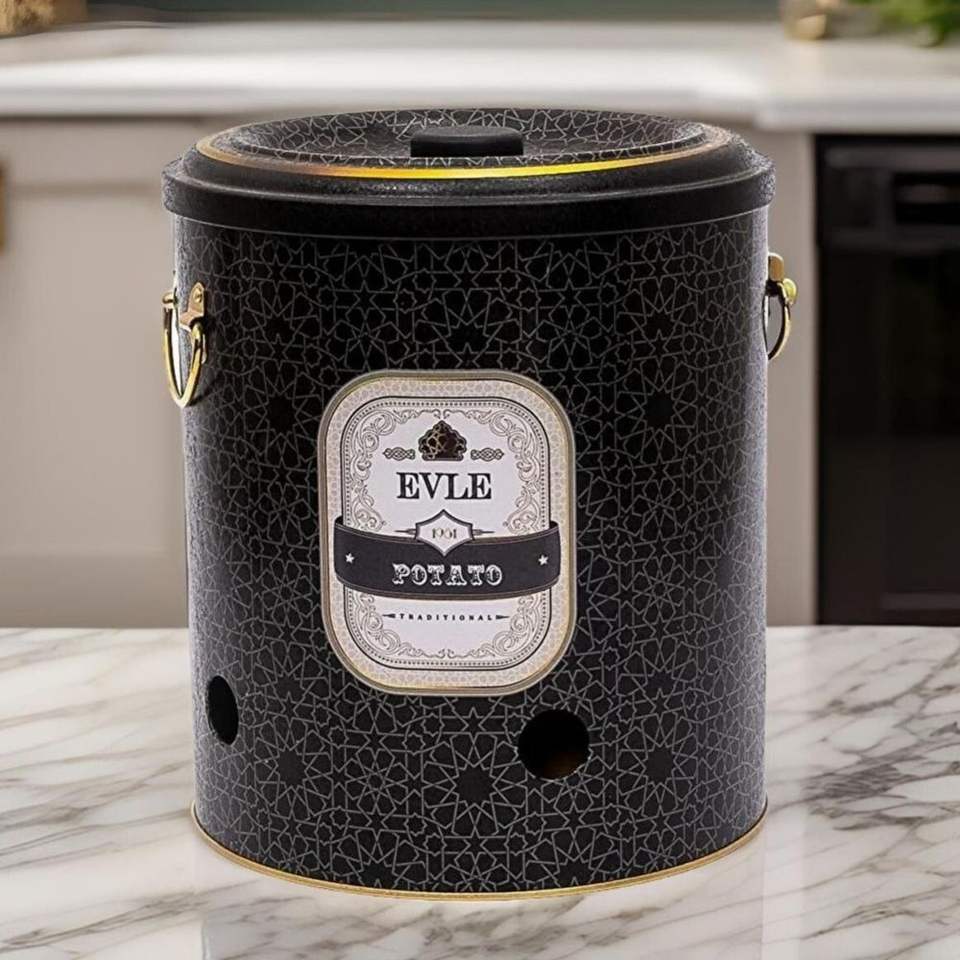 9L Gold Geometric Pattern Black Background Metal Bread Box 225x240mm Potato & Onion Storage Bin for Household Preservation