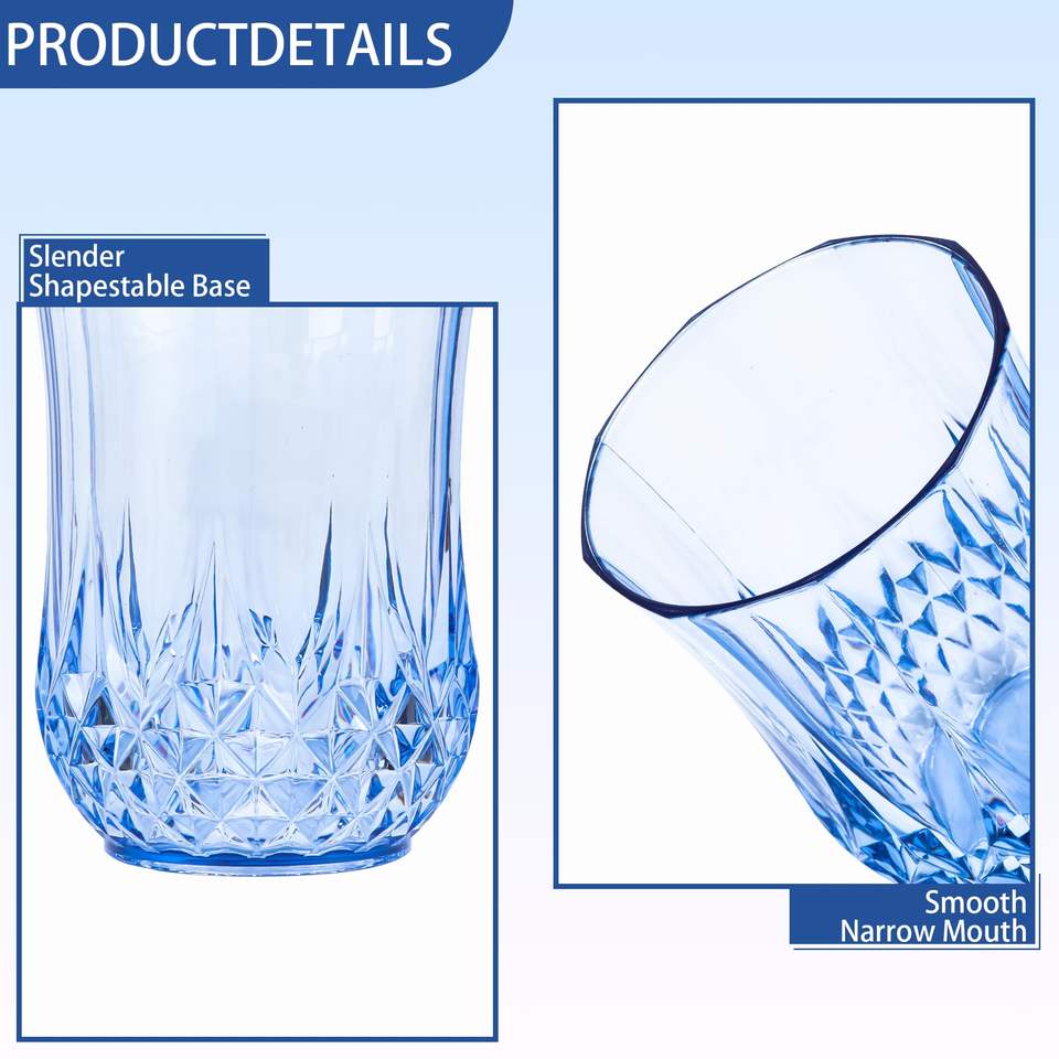 9oz Blue Transparent Stemless Wine Glasses Plastic Drinking Glasses Reusable Cups Whisky Goblets Plastic