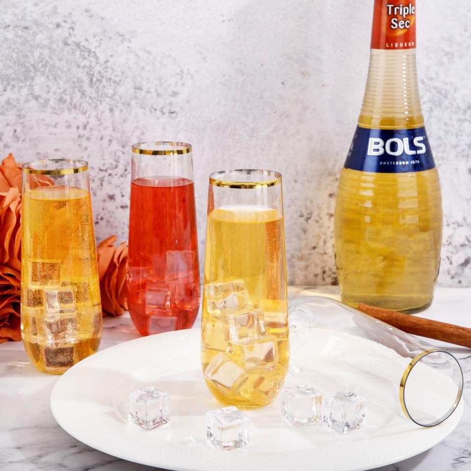 9oz Gold Plastic Stemless Wine Glasses Disposable Champagne Wine Whiskey Cups Shatterproof Recycled