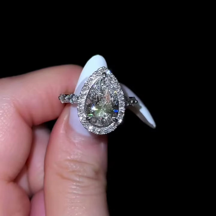 9x11 mm pear cut moissanite halo engagement ring marquise round bubble band white gold plated fine bridal jewelry