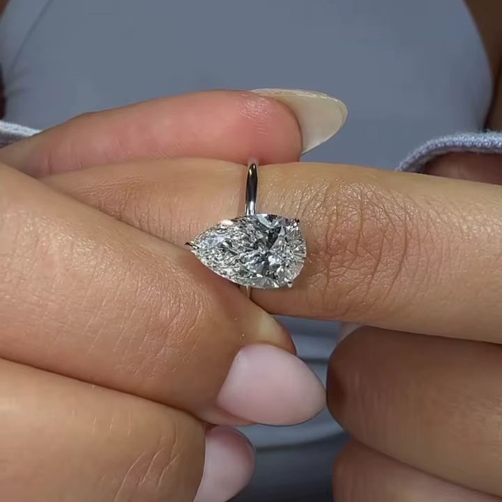 9x11mm Pear Cut Moissanite Solitaire Engagement Ring Hidden Halo White Gold Plated 925 Silver Fine Wedding Jewelry Wholesale