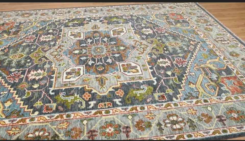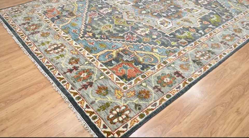 9x12 Blue Oushak Hand Knotted Modern Rug Turkish Style Coffee Brown Navy Green Abstract Pattern Customizable Options Available