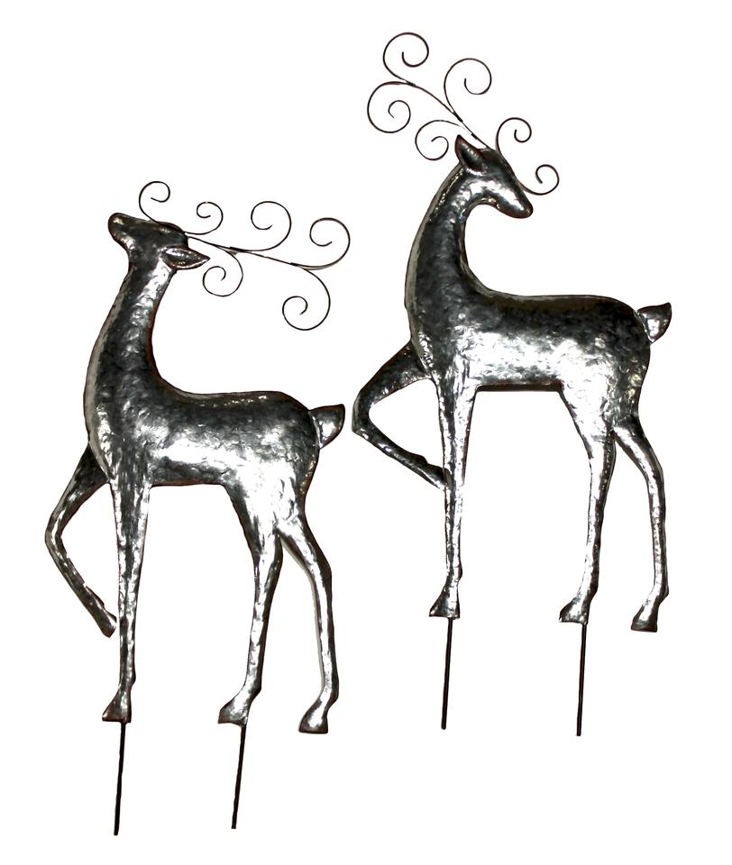 A Charming Pair of Hammered Silver Metal Deer Stakes | Unique and Whimsical Ornaments for Your Holiday Garden or Lawn