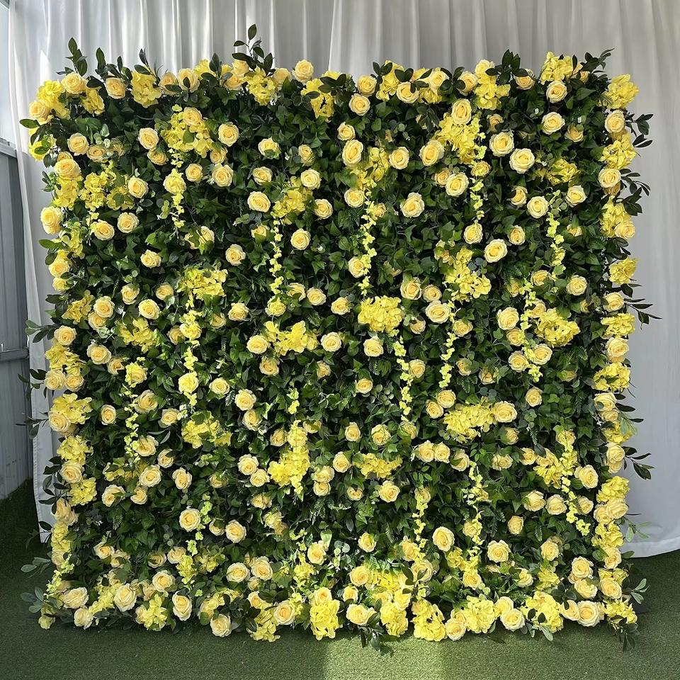 A-FW018 Luxury Flower Wall Backdrop 8ft x 8ft Artificial Silk Roses for Wedding Party Photo Booth Decoration
