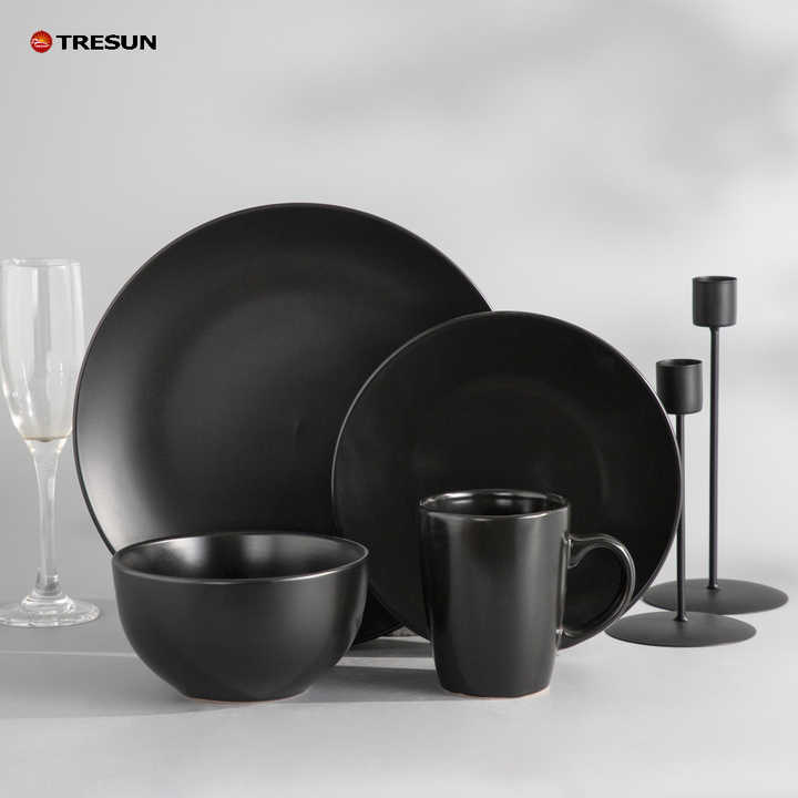 A Grade Round Black Classic Black Stoneware Dinner Set Modern Ceramic Tableware Dinnerware Sets for Wholesale for Family