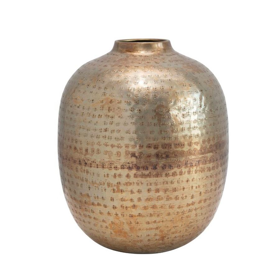 A.H Decorative Modern Copper-Plated Aluminum/Brass Flower Vase with Hammered Design Lightweight Floor & Home Kitchen Decor