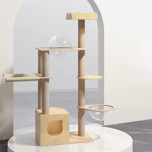 A New Playground for Precious Cats Modern Wood Cat Tower Capsule Bed Movable Disassembly Rectangle Shape