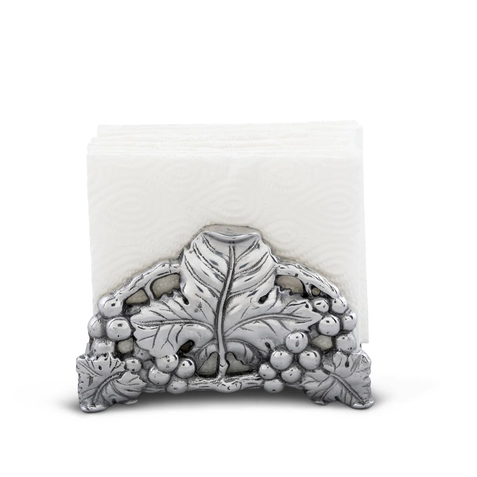 A-One Look Silver Finished Metal Napkin Holder With Grape Cluster Pattern La-tang Rem Style Elegant & Classic Table Decoration