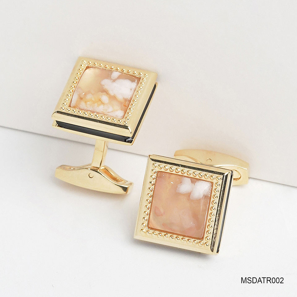 A Pair of 18K Gold-Plated Cufflinks for Men featuring White Agate Fengshui Gemstones (MSDATR002) from the Tinh Vu Collection