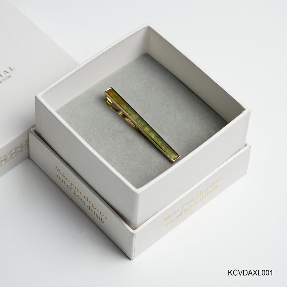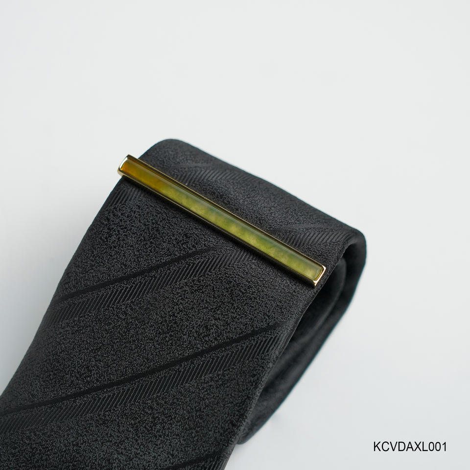 A Premium 18K Gold-Plated Tie Clip for Men featuring Green Agate Fengshui Gemstones (KCVDAXL001) from the Tinh Vu Collection