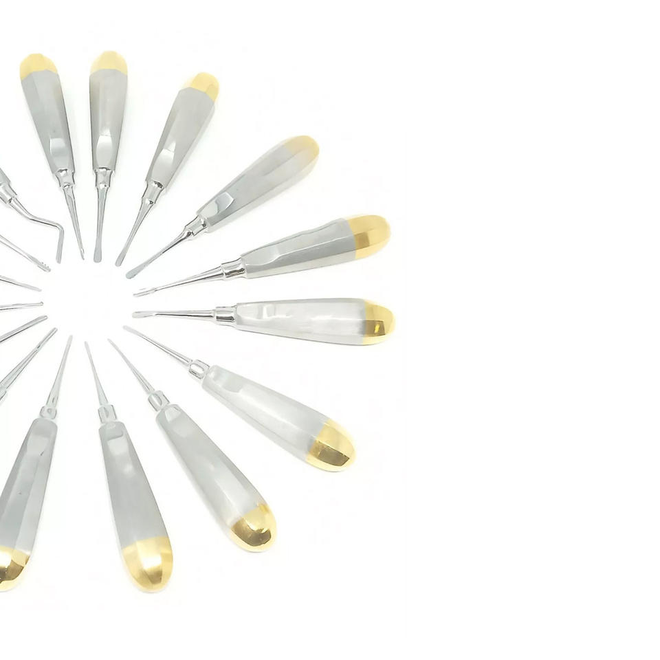 Set of 16pcs Assorted Dental Root Elevators Orthodontic Tooth Surgical Gold Stainless Steel Basis Surgical Instruments