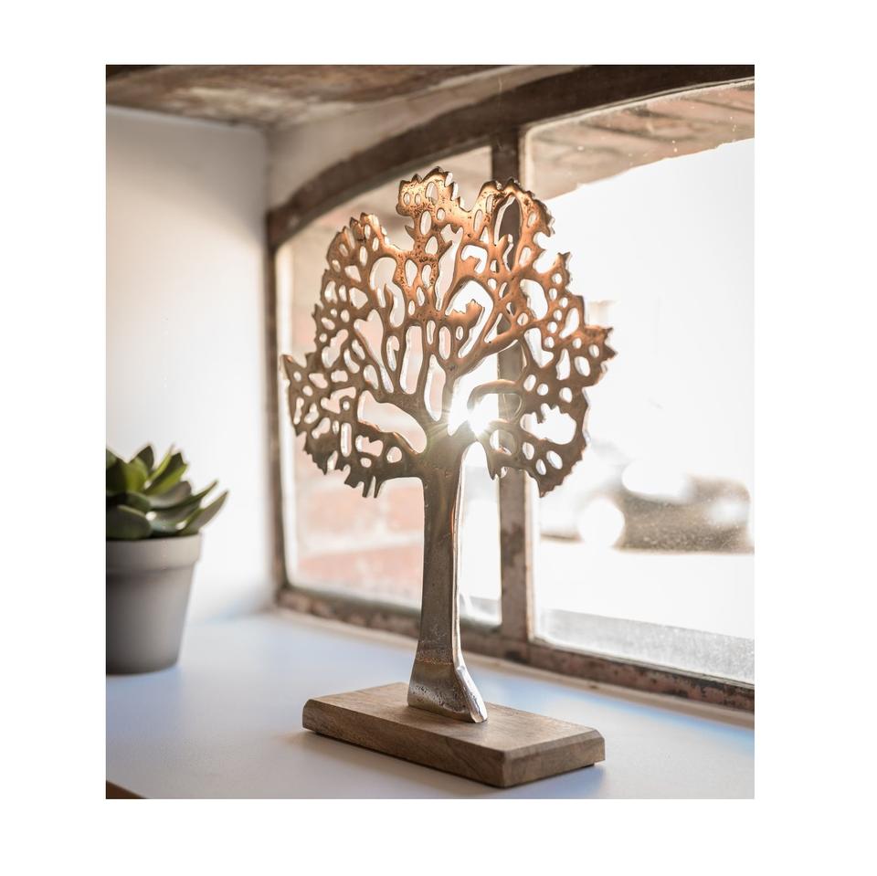 A contemporary aluminium tree sculpture completes premium interiors with balance elegance and artistic form