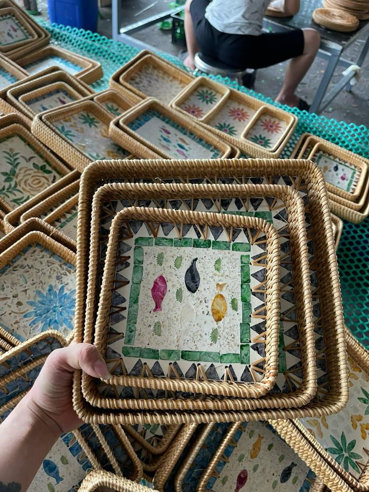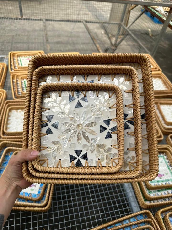 rattan tray set