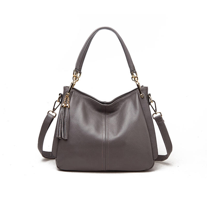 Detachable Genuine Leather Handbag Large Capacity Featuring Simple Design Zipper Closure Strong Applicability Summer Fashion