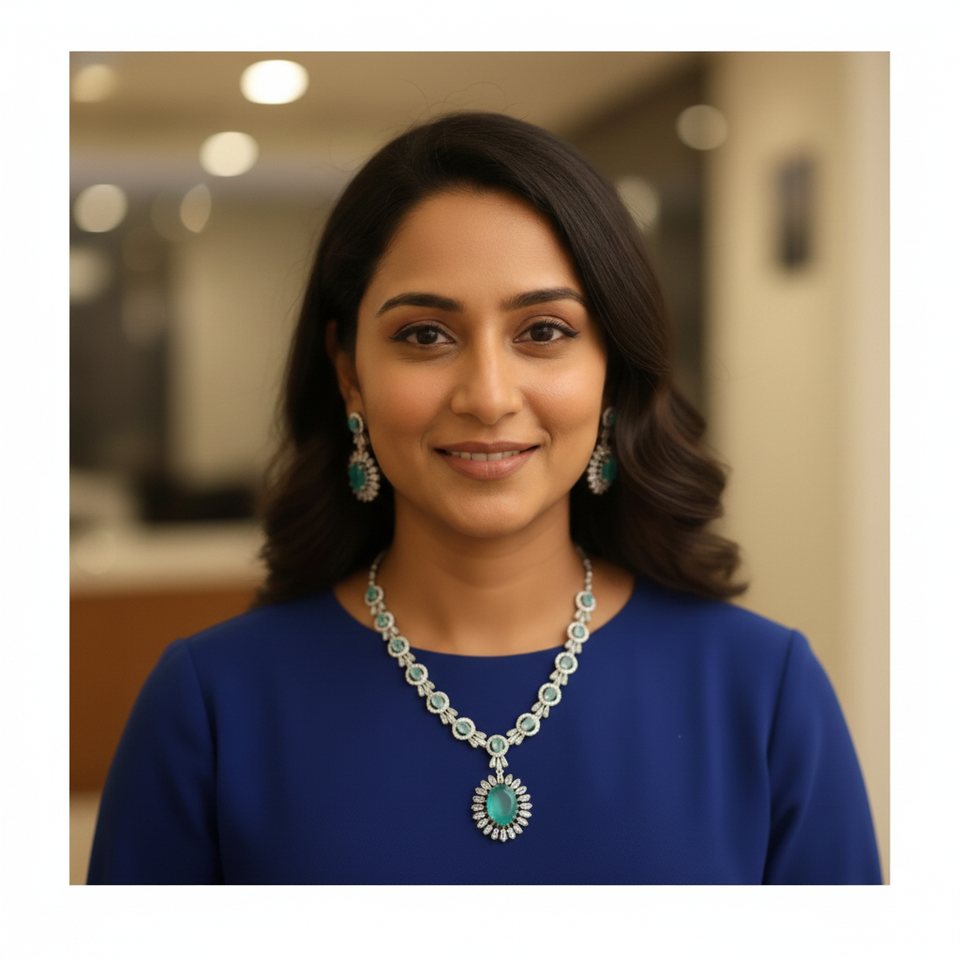 A luxurious necklace and earrings set crafted with radiant emerald green oval stones surrounded by brilliant white halo stones