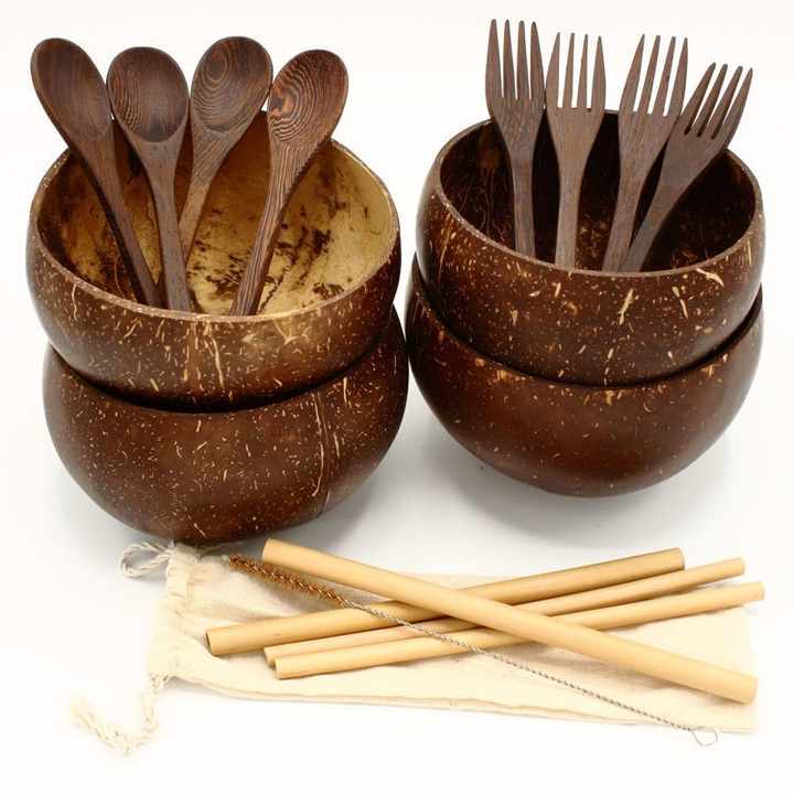 A.mazon Best Selling Jumbo Coco Bowls Natural Coconut Shell Bowl and Spoon Set logo Engraving Customization Private Brand