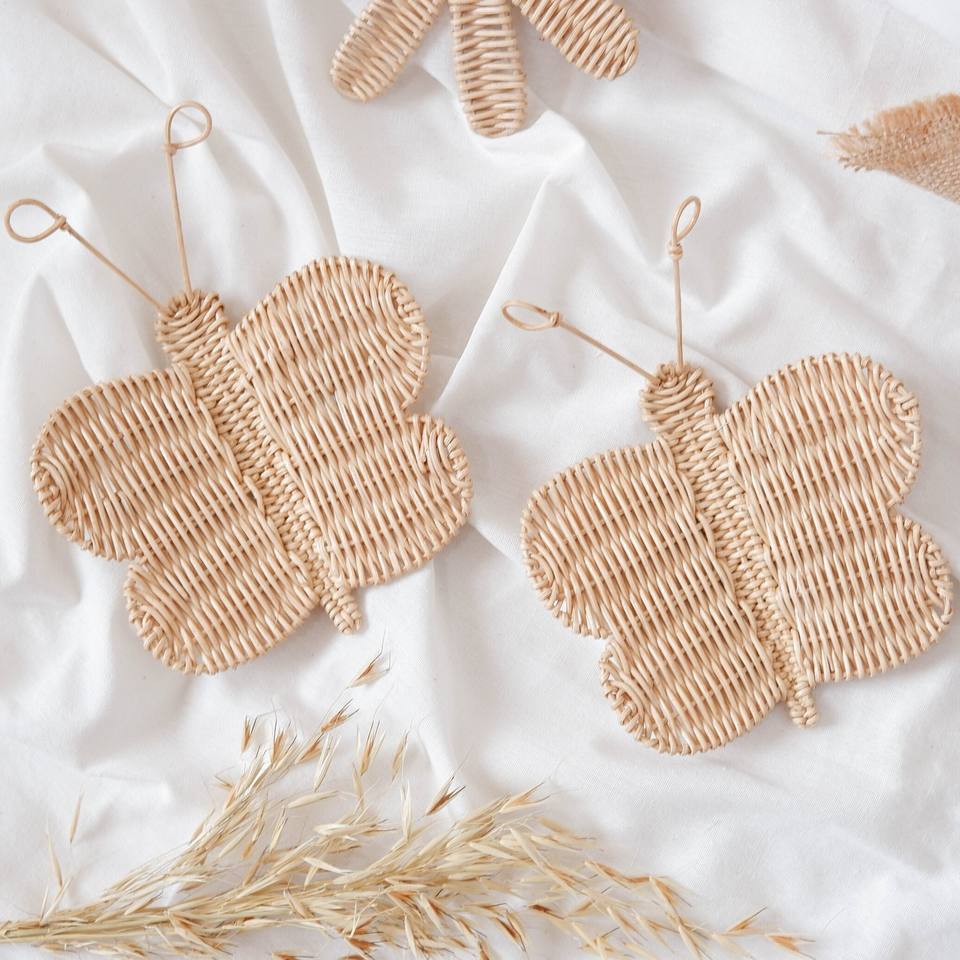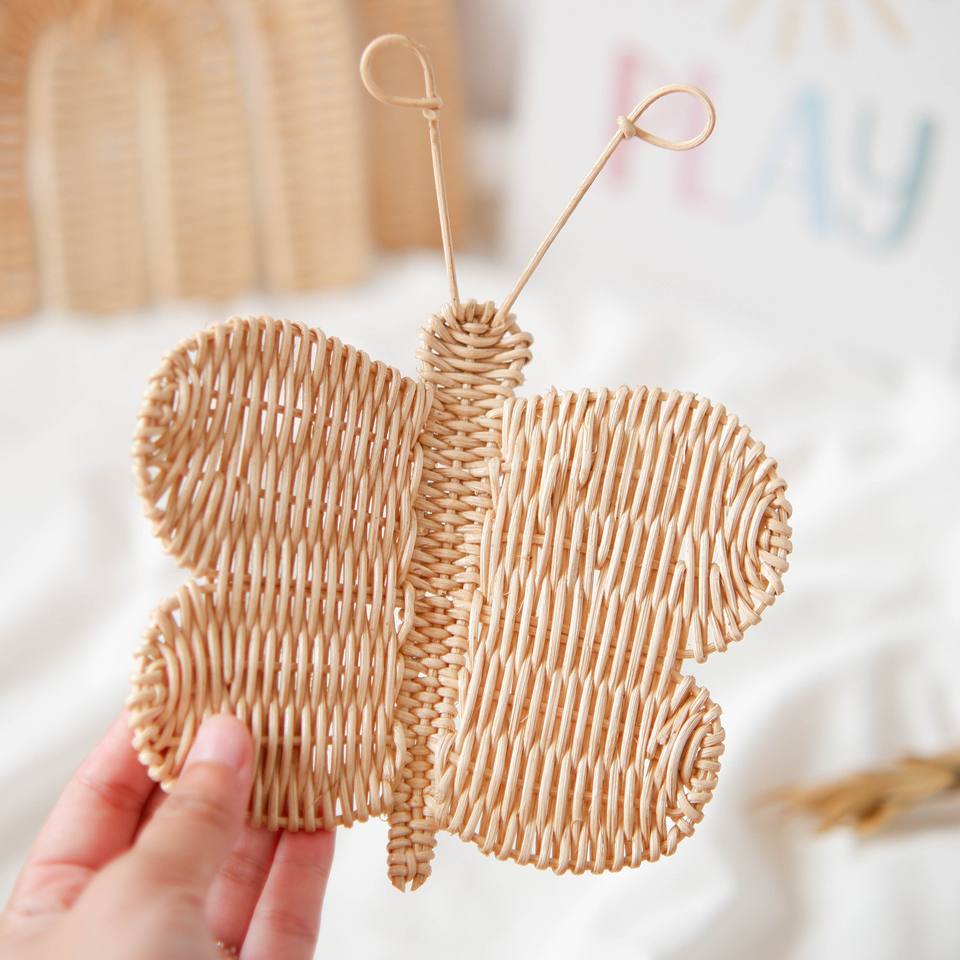 A.mazon Best Selling Kids Room Wall Hangings Rattan Flower and butterfly Wall-mounted Decor Set