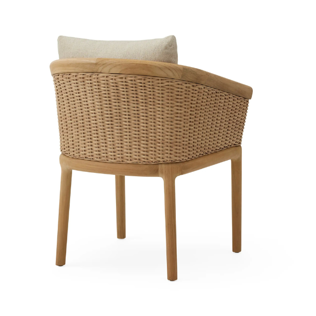 A single chair with rattan accents and comfortable, sturdy eco-friendly cushions for your patio or living room