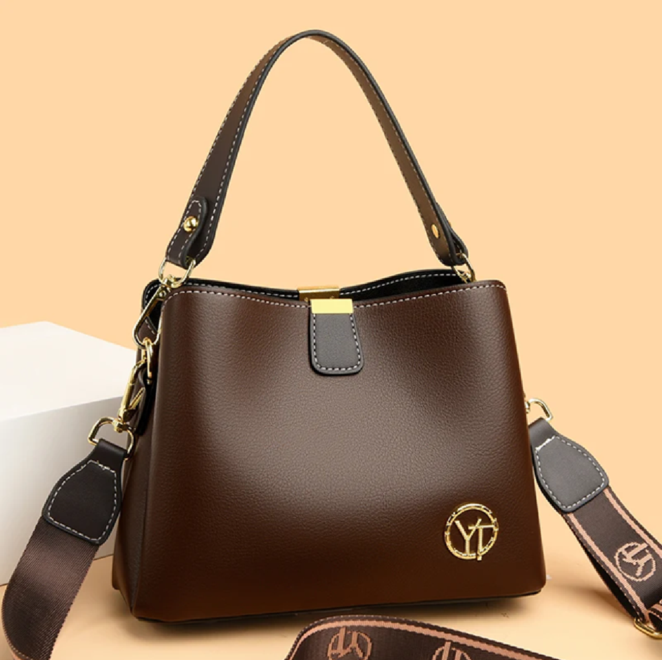 A stylish burgundy leather bag with crocodile-textured accents and multiple zipper compartments, perfect for organized look