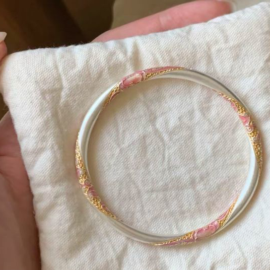 A vintage-carved jade bracelet featuring crystal, rubies, and flowers.