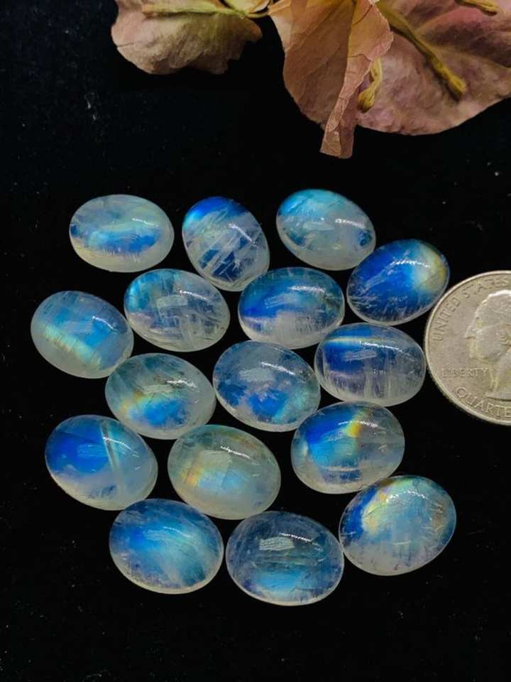 A1 Quality Natural White Rainbow Moonstone Polished and Semiprecious stone Multi-Flashing Loose Gemstones for Jewelry and Gifts