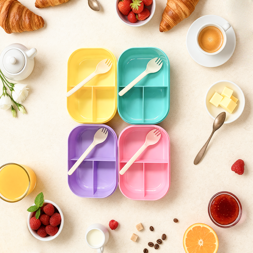A11 Reusable Cute Bento Lunch Box With Spoon 3 Compartment Plastic Food Container For Kids Adults