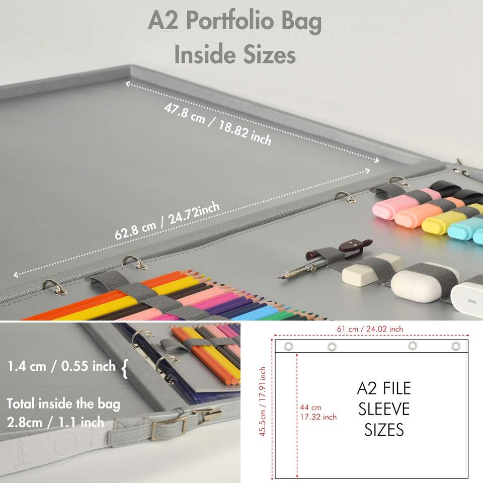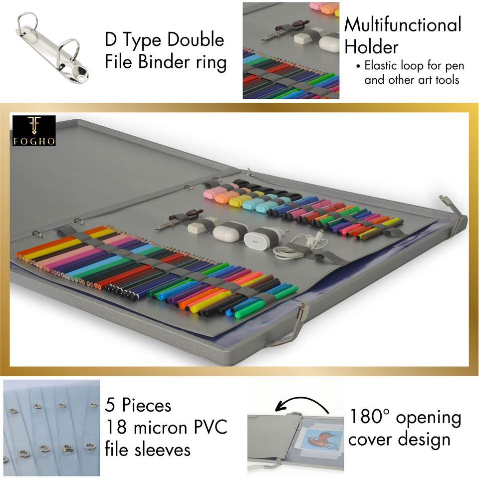 A2 Leather Binder Portfolio Gift for Painters and Artists Leather Padfolio Folder with Art Supplies Bag