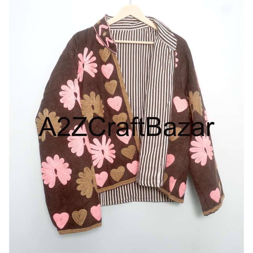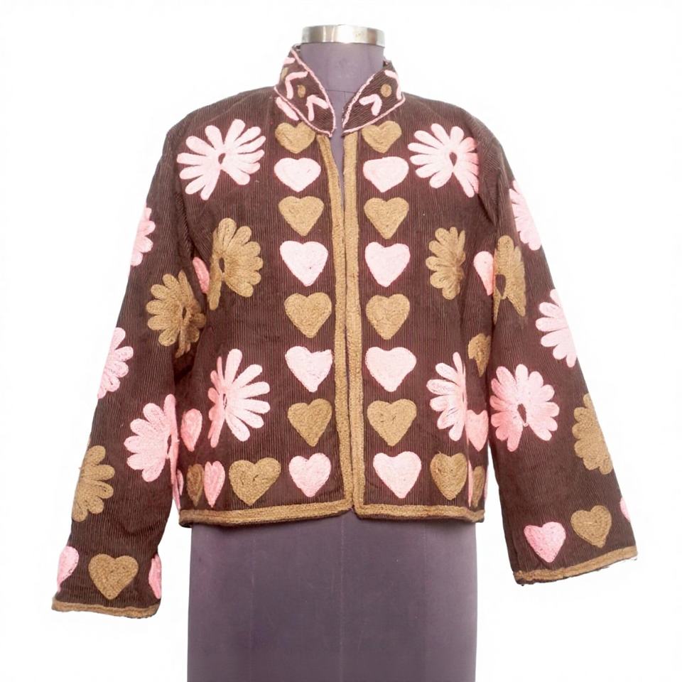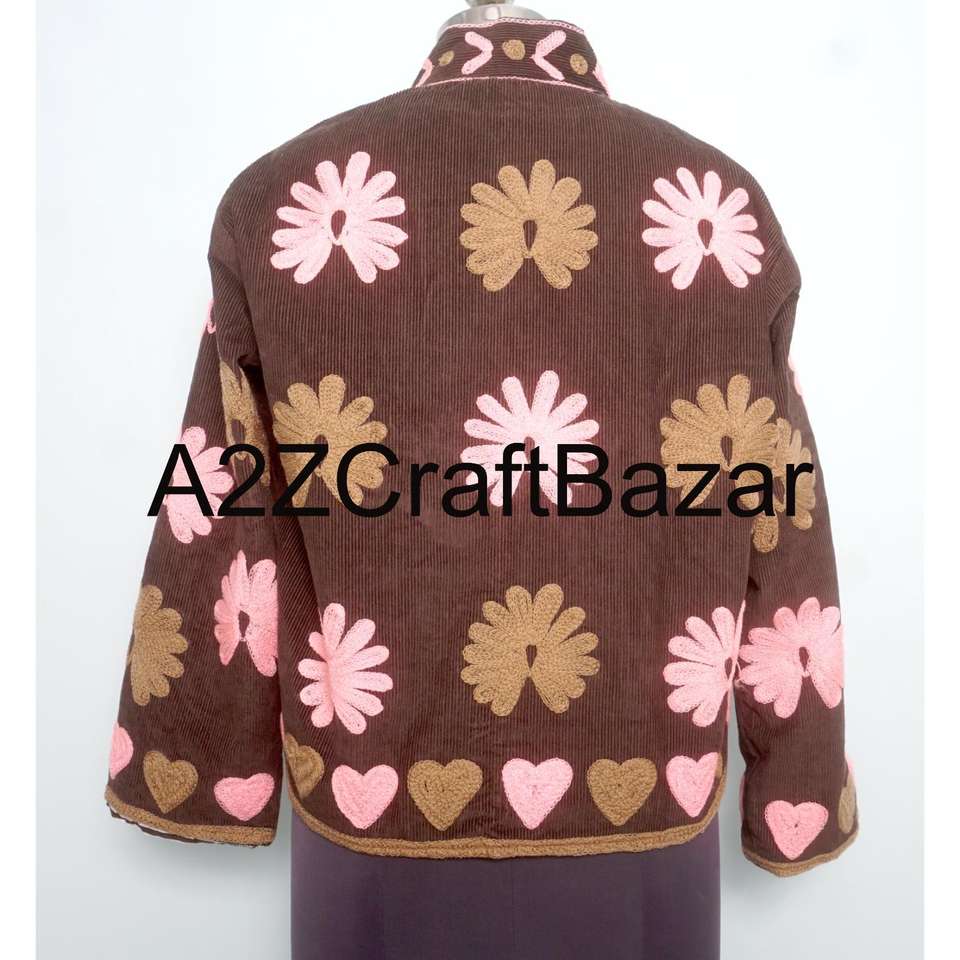 A2ZCraftBazar Cotrise Jacket Vintage Embroidery Mandarin Collar Regular Fit Breathable Eco-Friendly All-Season Cotton Lined