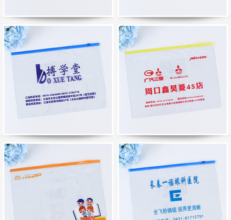 A4/A5/A6/ B5 Customized PVC Plastic Clear Frost Waterproof Zipper Bag Storage Organizer Zip Lock Pouch Document File Holder