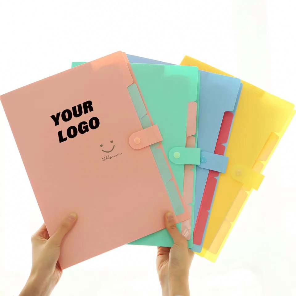 A4 Multi-Layer Folder File Bag Candy Color Five Grid Organ Bags Large Capacity Simple PP Material Multifunction Promotional