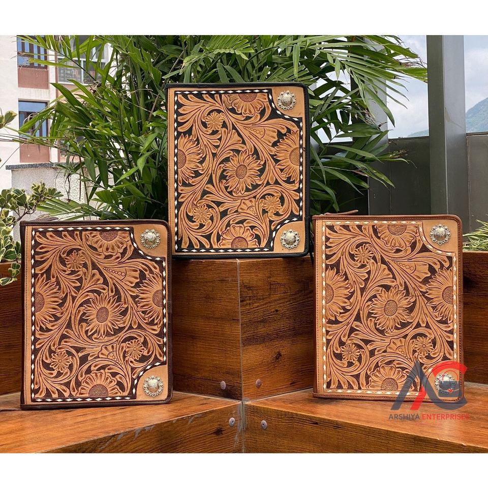 Genuine Hand Tooled Leather Business Portfolio File Folder