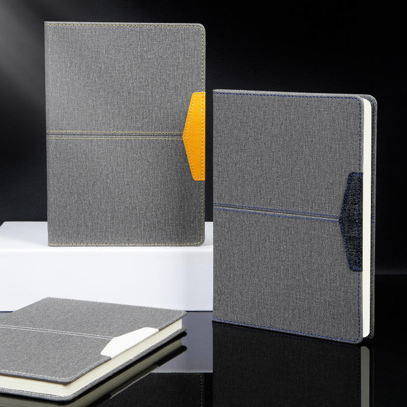 Custom Logo A5 Hardcover Business Cloth Pattern Notebook with Thick Leather Cover for Work Meetings Enterprise Office Recordings