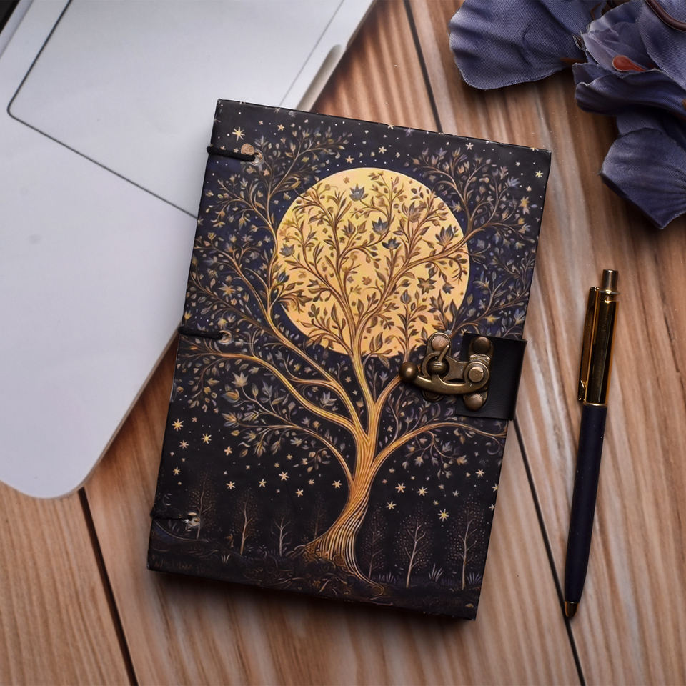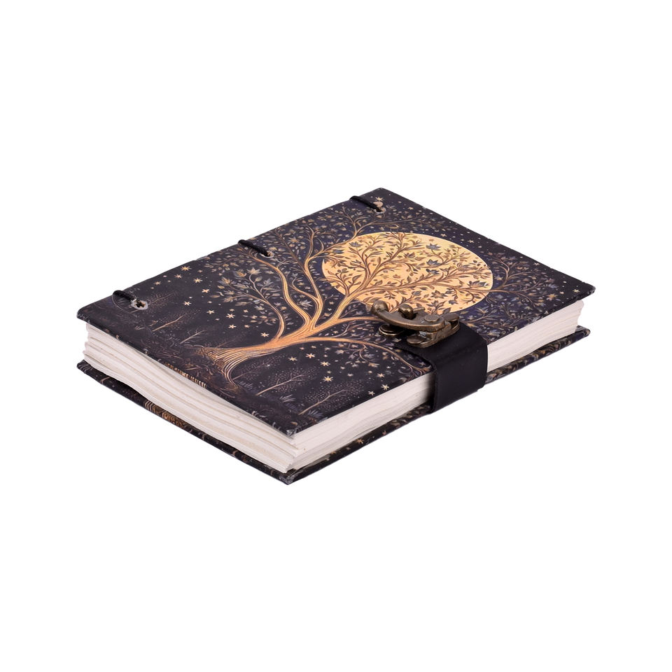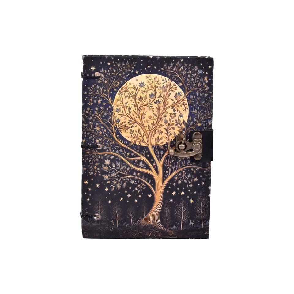 A5 Handmade Paper Notebook Tree of Life Moon Design Eco Friendly Journal | Diary with Metal Lock Closure Bulk Wholesale Supplier