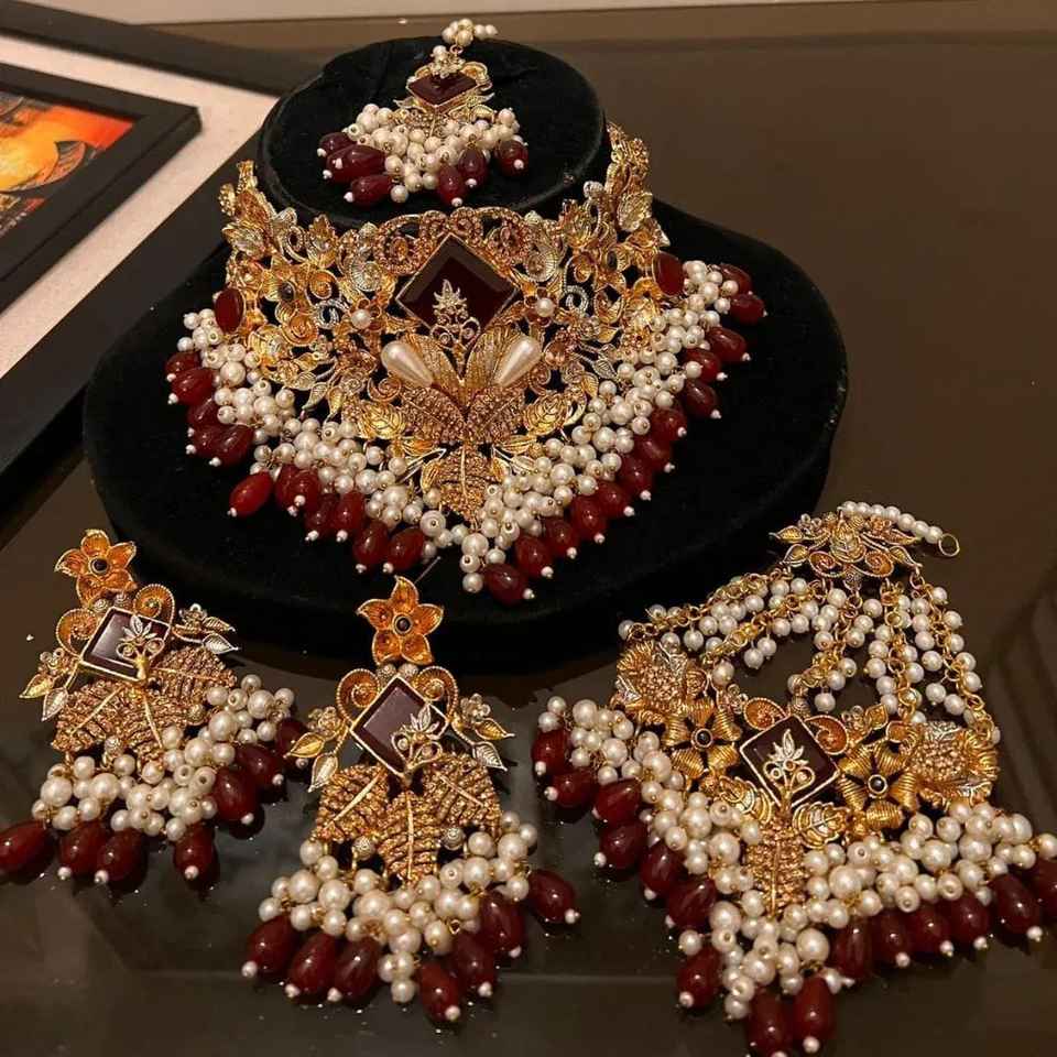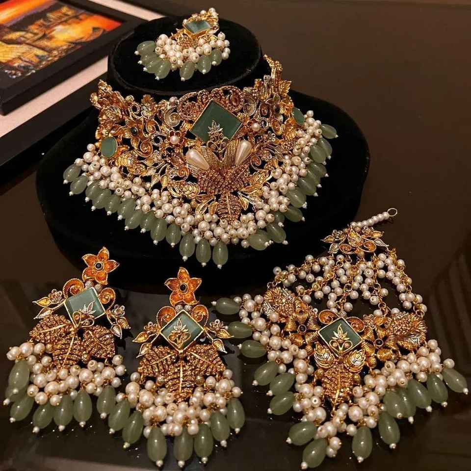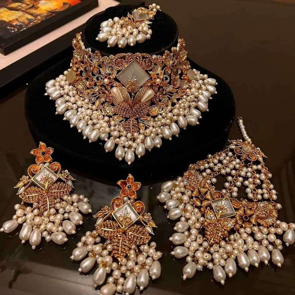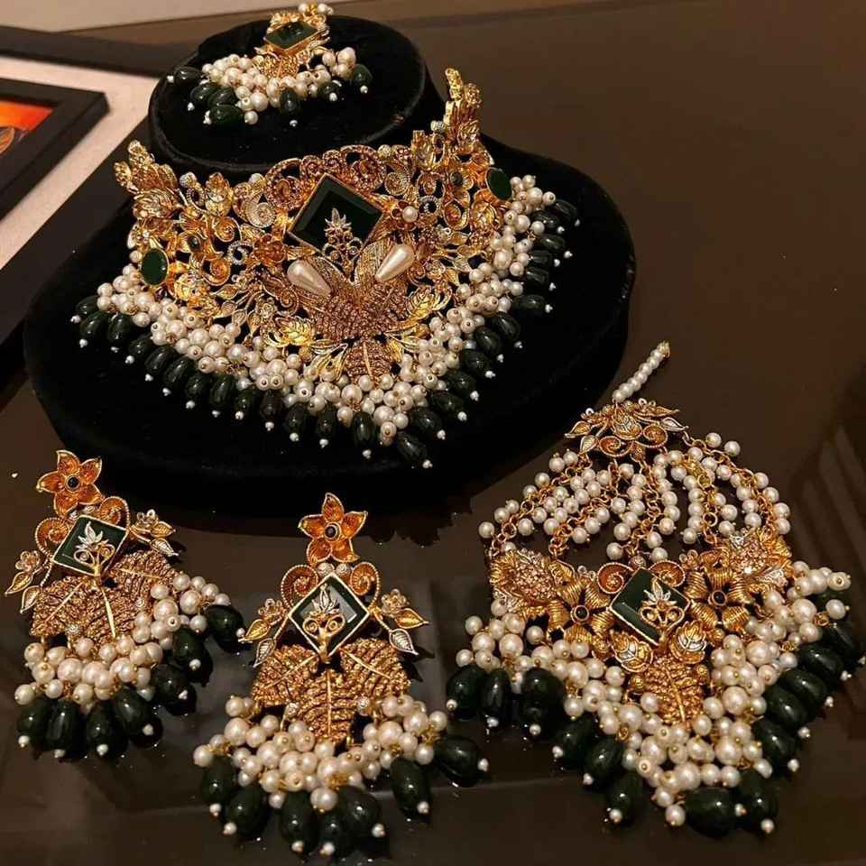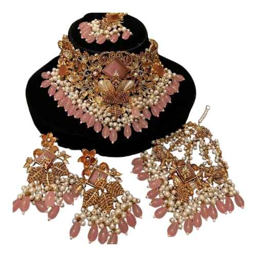 AA IMPEX Traditional Antique Wedding Fashion Jewelry Sets for Women Elegant Indian Necklace Earrings Link Chain Trendy Style