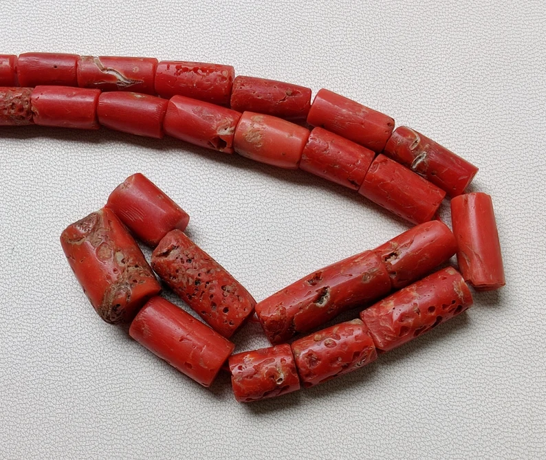 AAA 100% Natural 16 Inches Red Coral Beads Polished Loose Gemstones for Jewelry Making Smooth Tube Beads Necklace