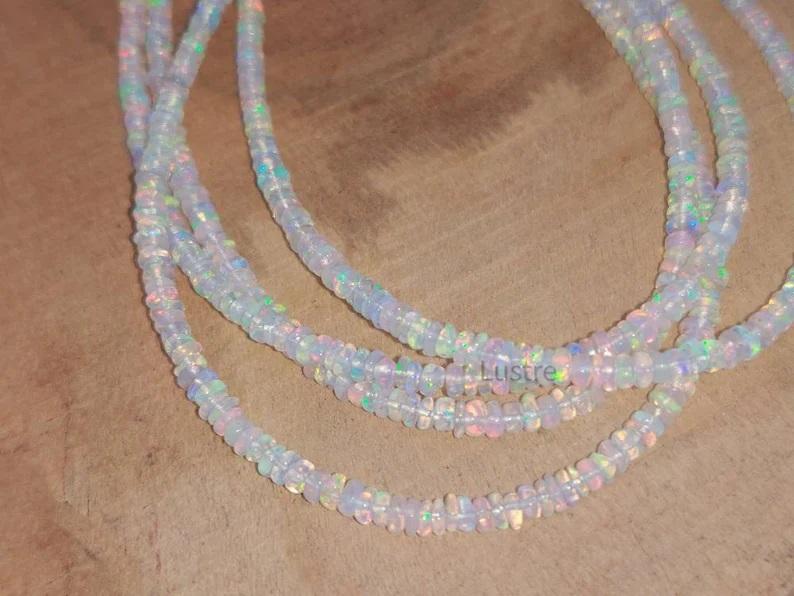 AAA+ 16-Inch Ethiopian Fire Opal Bead Strand Smooth Rondelle Handmade Jewelry Flashy Welo Opal Necklace Gift Ethiopia Jewelry