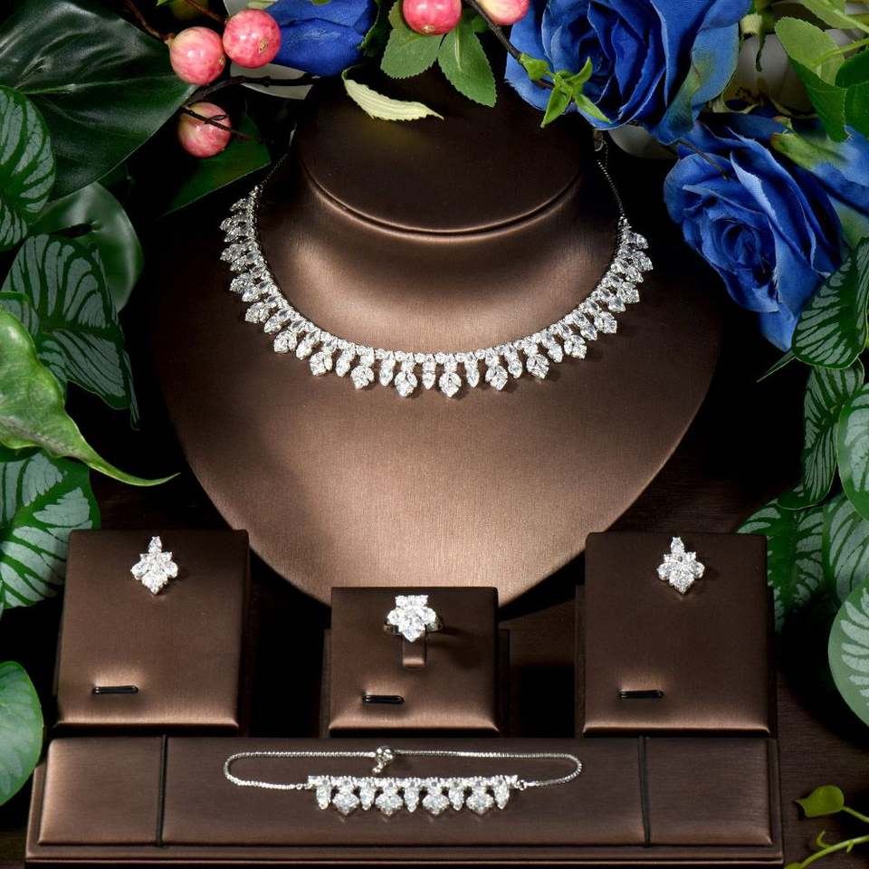 AAA 4-piece Drop Style Jewelry Cubic Zirconia Earrings and Necklace Sets for Brides Wedding Anniversary S-09