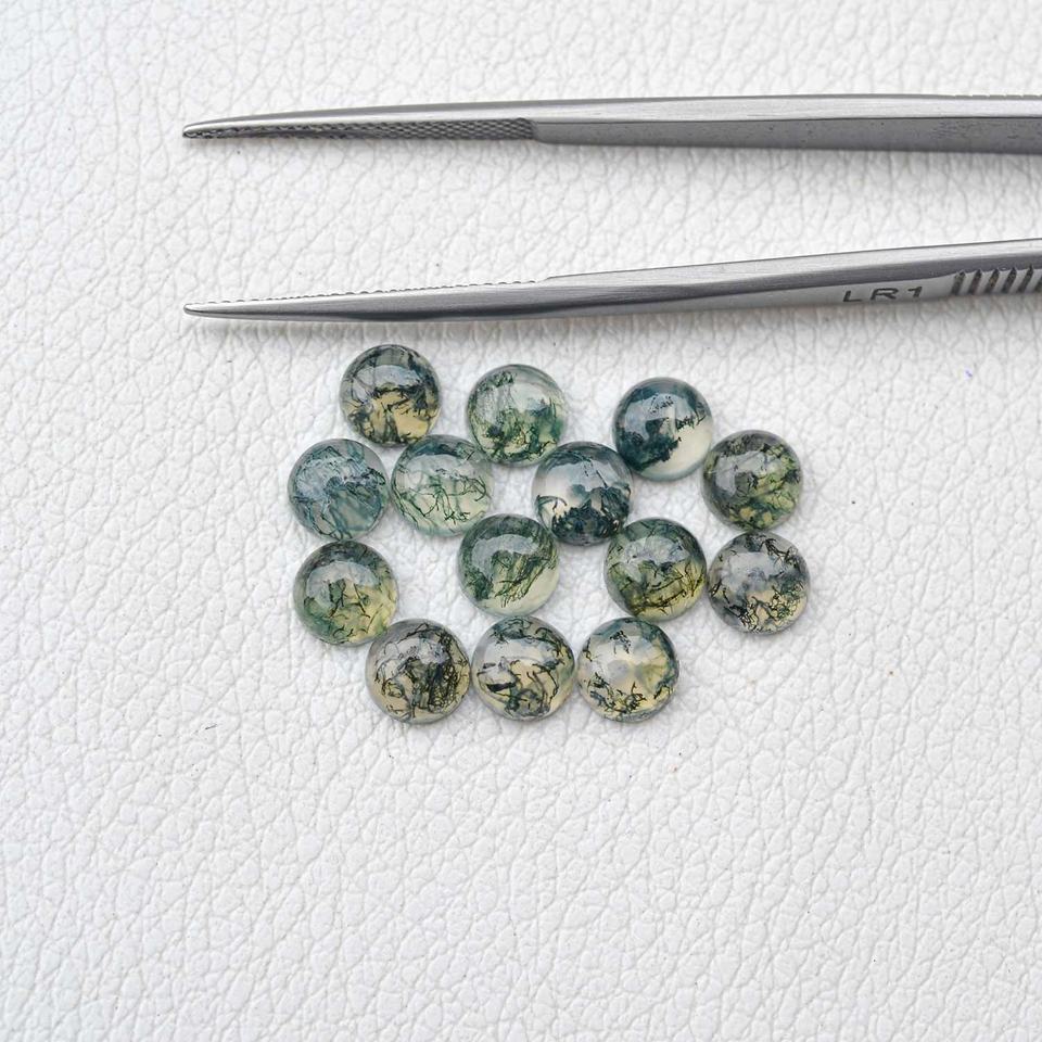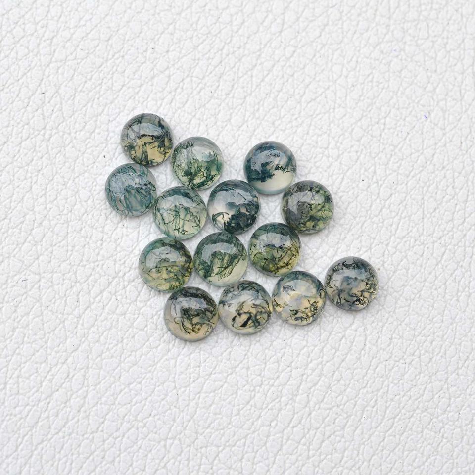 8mm Natural Moss Agate Smooth Round Cabochon Wholesale Loose Gemstone Hand Polished Gemstones Customization Agate Stone Jewelry