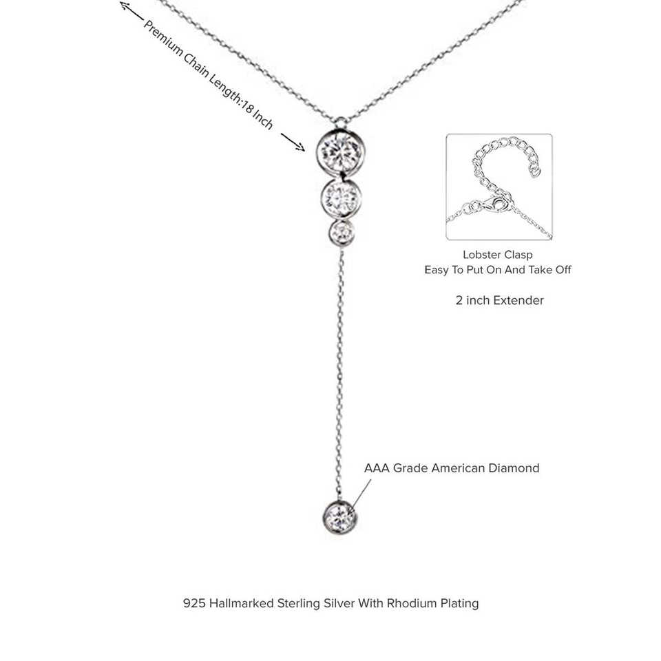 AAA American Diamond Y Shape Necklace 925 Silver Jewelry Collection