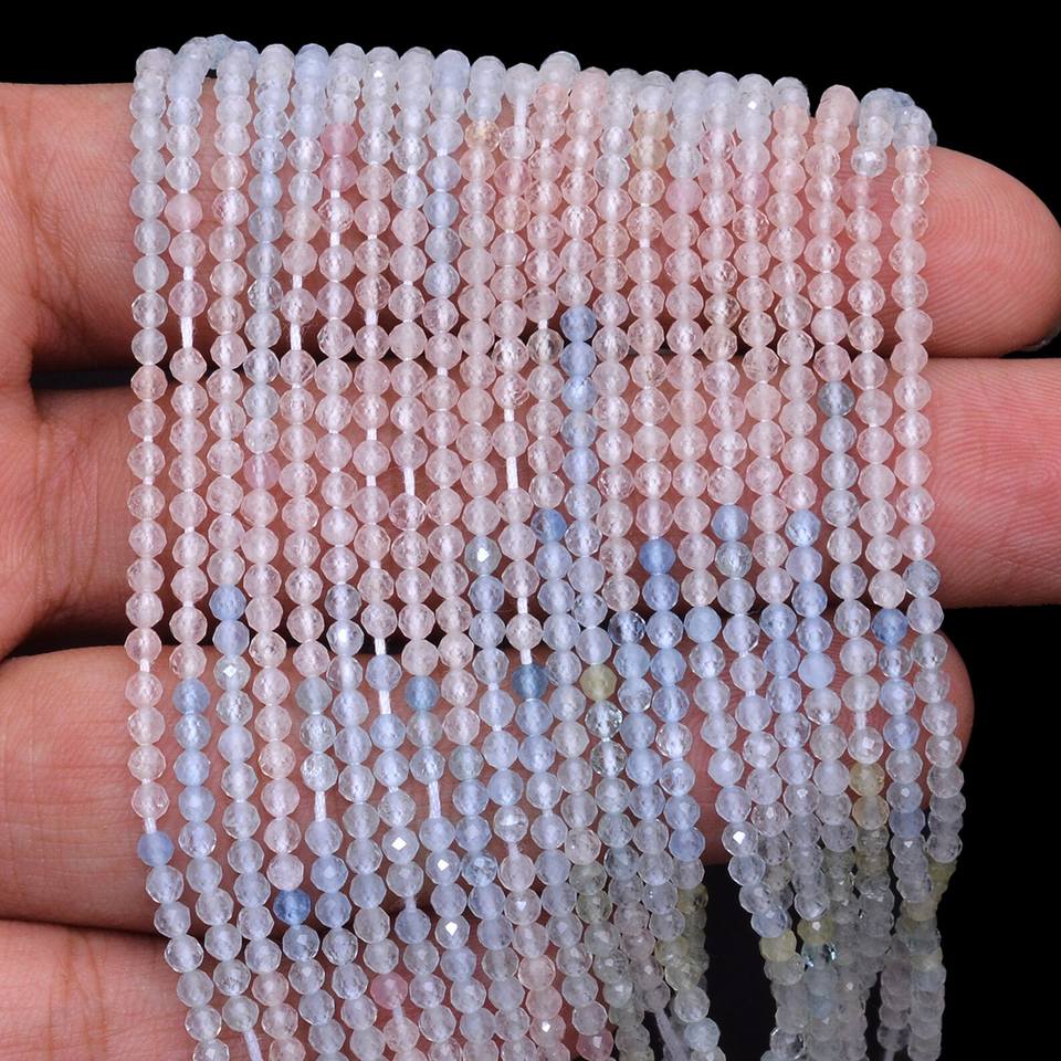 AAA+ Aquamarine 2mm-3mm Micro Faceted Beads Natural Multi Aquamarine SemiPrecious Gemstone Mix Rondelle Beads for Jewelry Making