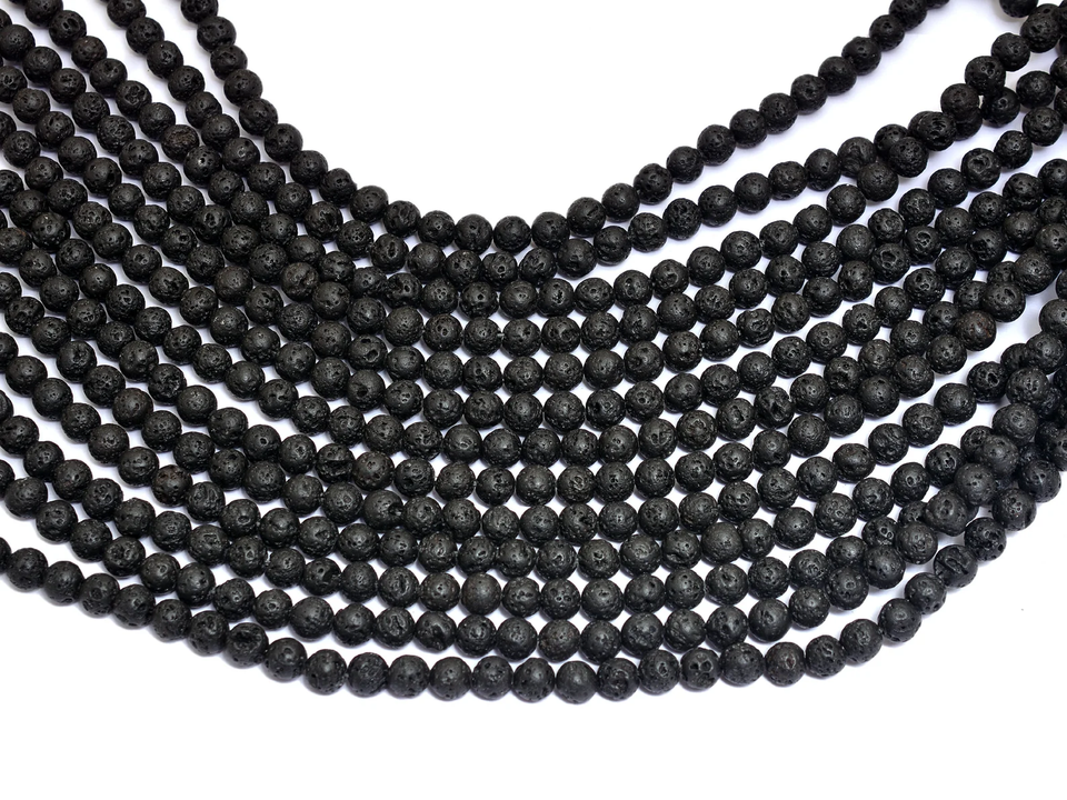 AAA+ Black Lava 6mm-8mm Gemstone Smooth Round Beads Natural Lava Semi Precious Gemstone Loose Beads for Jewelry Making Supplies