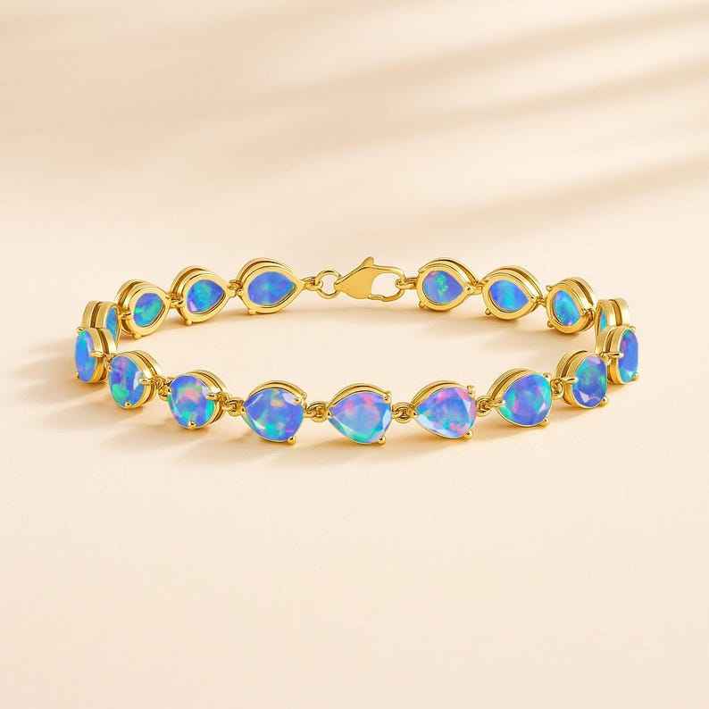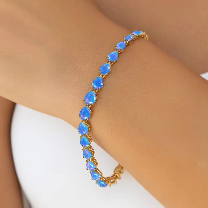 AAA Blue Opal Gemstone Silver Tennis Bracelet Natural Fire Opal Bracelet Handmade Birthstone Gift For Mom