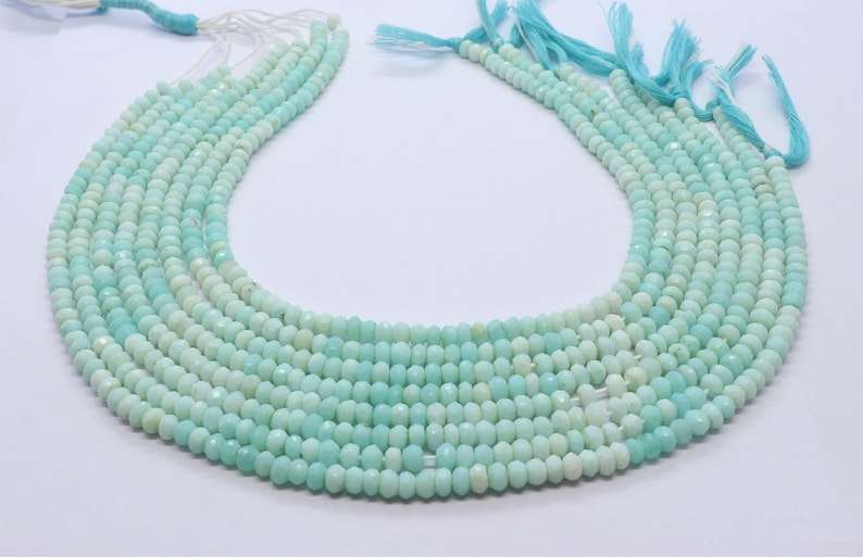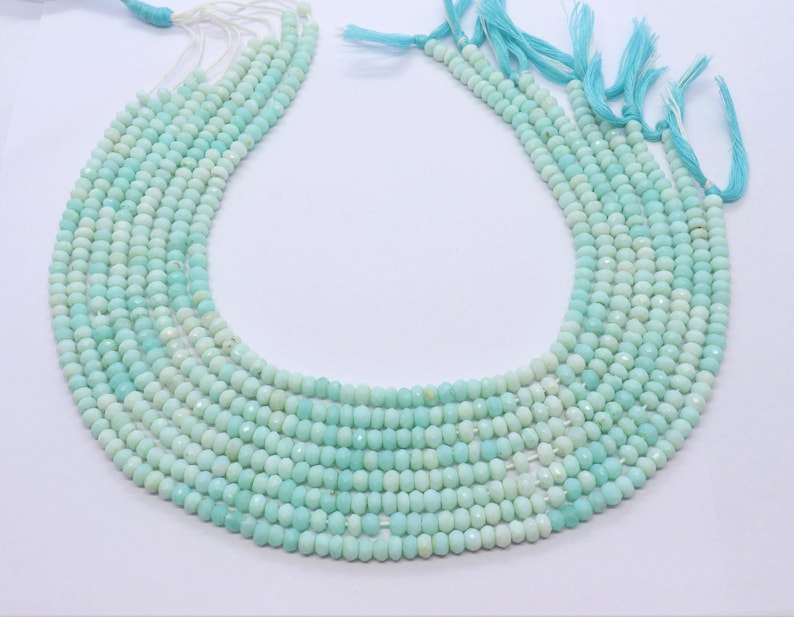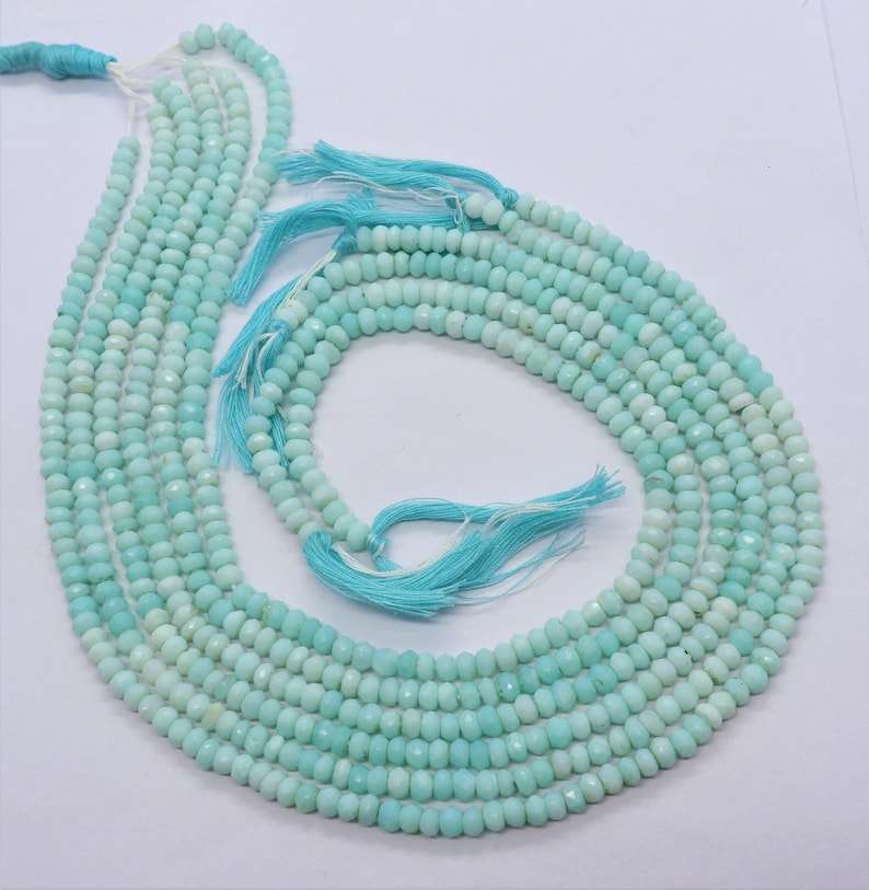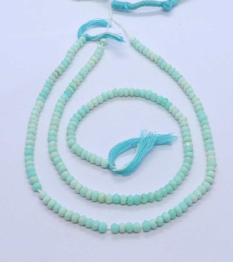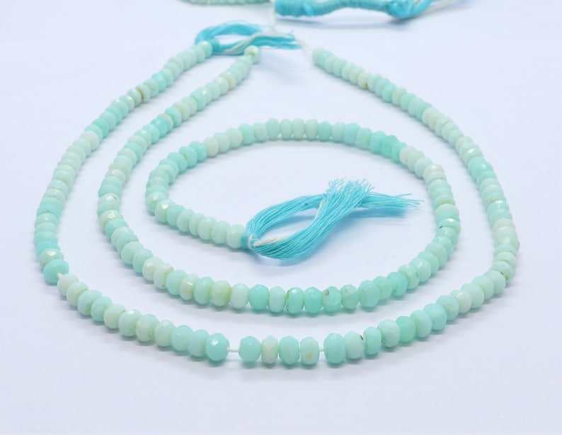 AAA Blue Peruvian Opal Faceted Rondelle Beads 4.5-5MM Blue Shaded Peru Opal Gemstone Rondelle Beads 13 Inch Natural Peruvian