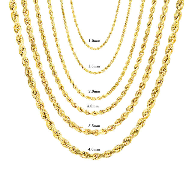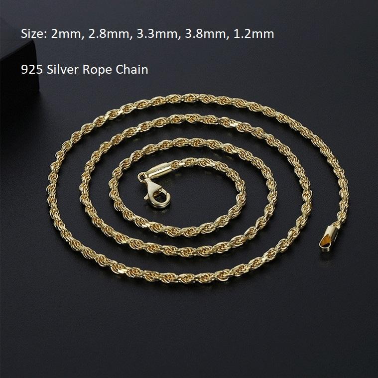 AAA GEMS 1.5mm 3mm 4mm Solid Fill Mens Sterling Sier Plated 14K Yellow Rose Gold Necklace Rope Chain