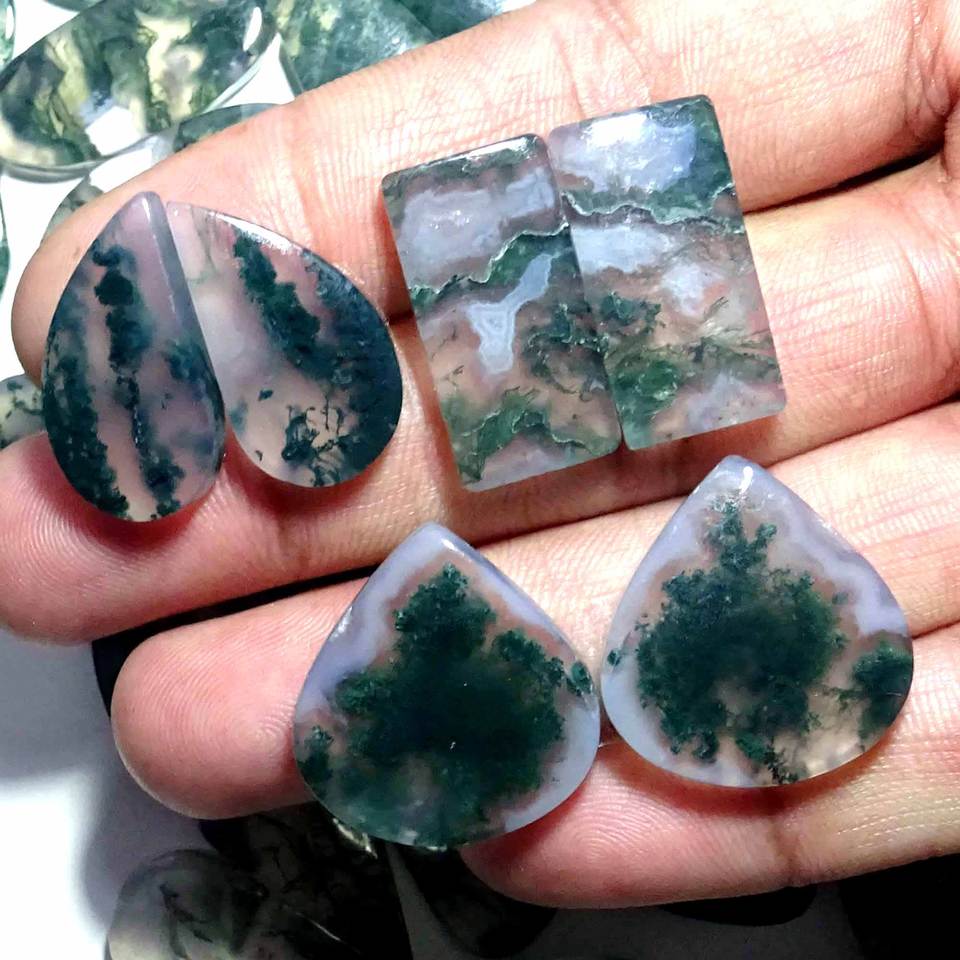 AAA Grade High Quality Natural Moss Agate Cabochon Pairs Quartz Gemstones for Elegant Earrings