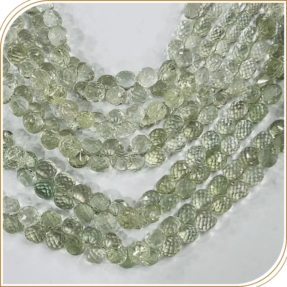 AAA High Quality Natural Green Crystal Gemstone Faceted Briolette Onion Drops 8 Inches Strand Size 5 6mm Approx Bulk Pack for