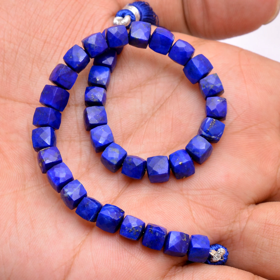 AAA+ Lapis Lazuli 6mm Faceted Cube Briolette Beads | 8" Strand | Natural Blue Lapis Semi Precious Gemstone 3D Box Loose Beads