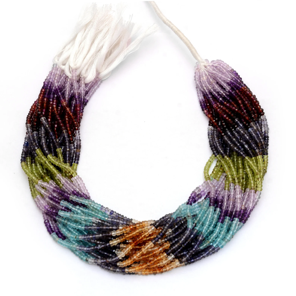 AAA+ Multi Gemstone Mix 3mm-4mm Hand Cut Faceted Rondelle Beads Natural Mix Semiprecious Gemstone Loose Beads for Jewelry Making