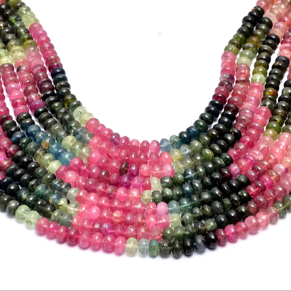 AAA+ Multi Tourmaline Gemstone 5mm Smooth Rondelle Beads Natural Tourmaline Semiprecious Gemstone Loose Beads for Jewelry Making